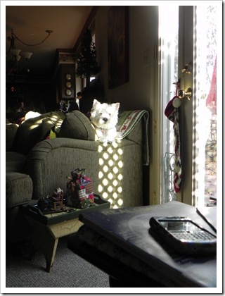 He is such a cutie and what beautiful photos! Perfect with the sun through the lattice. I still want to make a runner for my daughter and some quick mug rugs and potato bags as no one in my family has any. Merry Christmas!