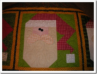 I put the top together at a fall quilt retreat about 7 years ago, then quilted it when I got back home!! Quilted fun swirls in the beards!